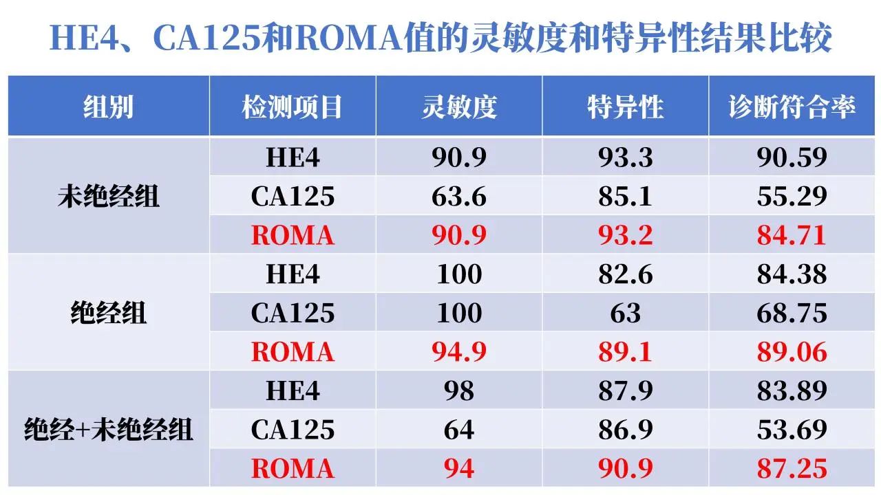 CA125聯(lián)合HE4可以減少30%-50%單一生物標(biāo)志物陰性卵巢癌的漏診,改善卵巢癌診斷和治療監(jiān)測(cè)的敏感性。
