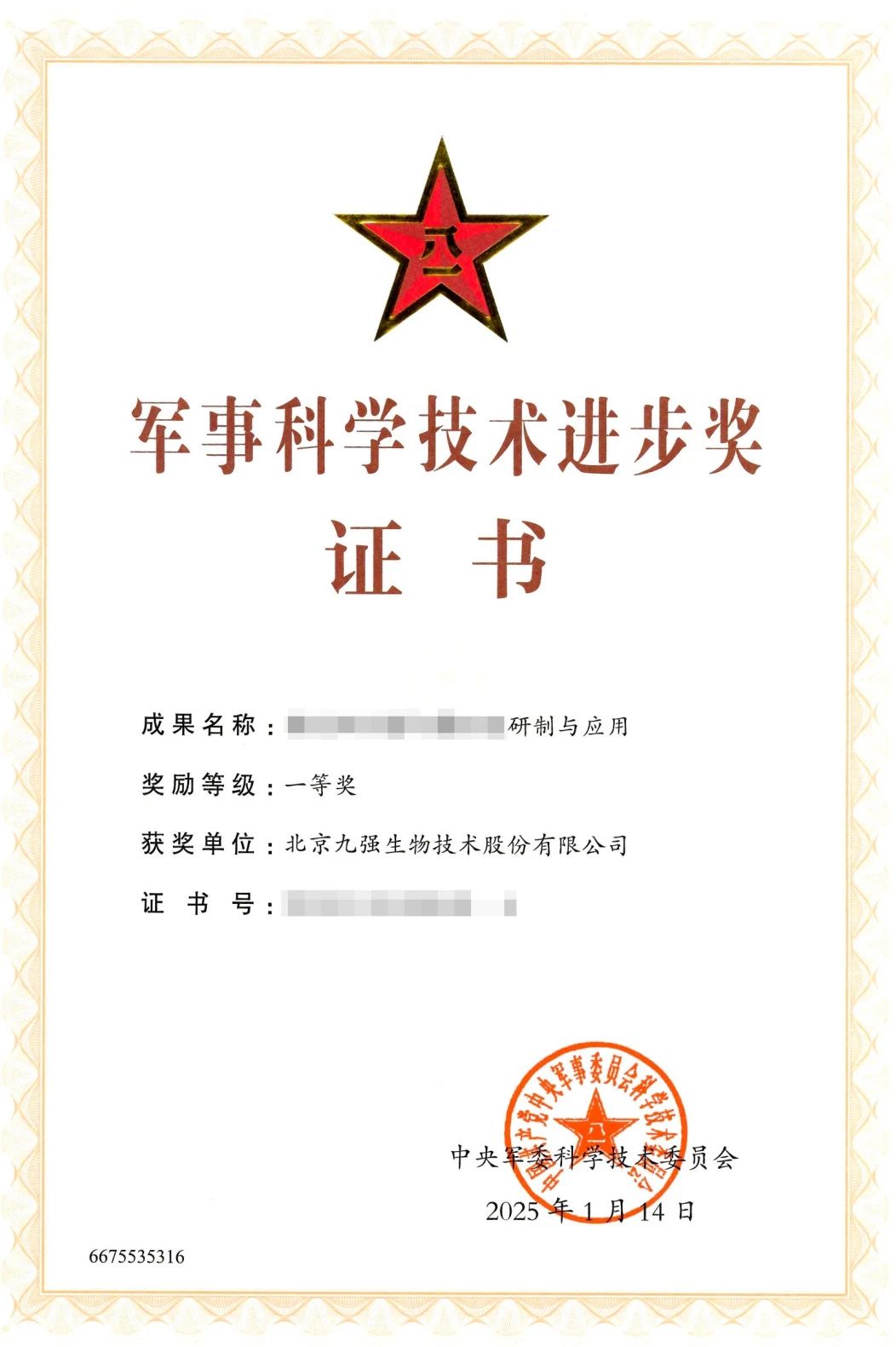 喜訊 | 九強(qiáng)生物榮獲軍事科學(xué)技術(shù)進(jìn)步一等獎(jiǎng)!