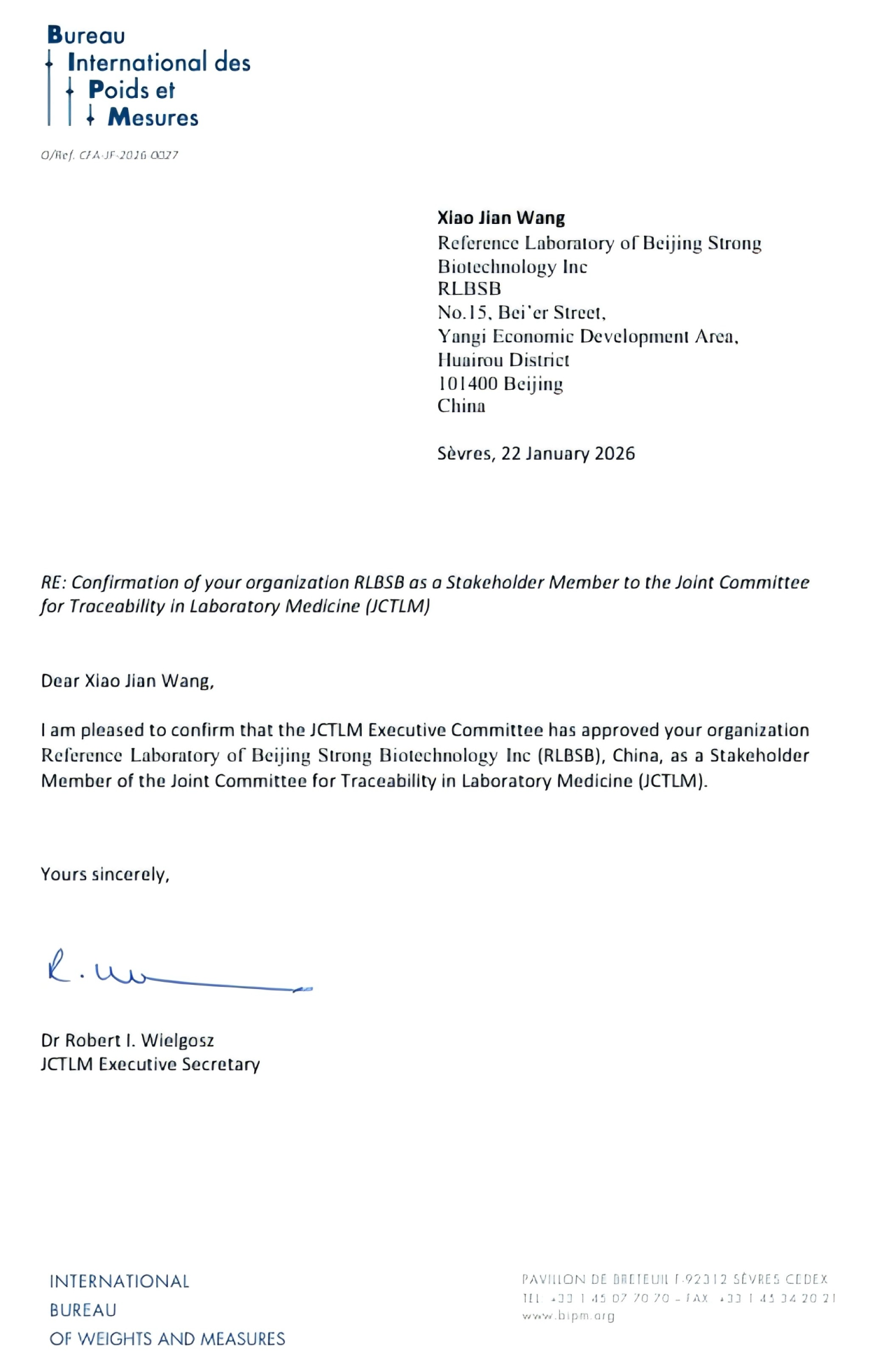 未來可期!祝賀北京九強生物成為國際檢驗醫(yī)學(xué)溯源聯(lián)合委員會利益相關(guān)成員(JCTLM Stakeholder Member)